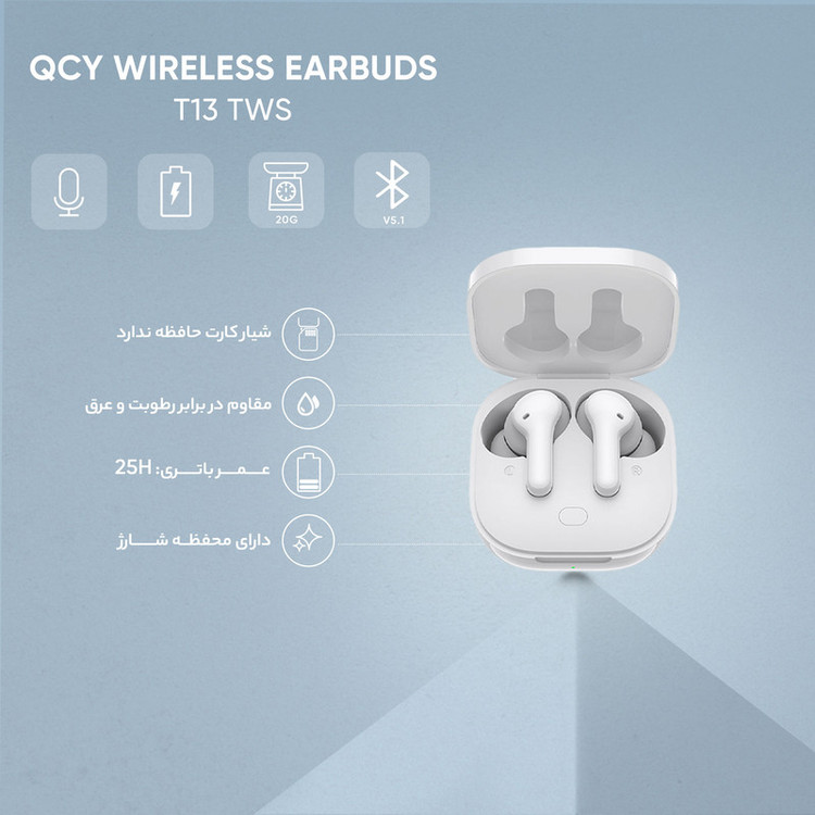 هدفون بلوتوثی کیو سی وای مدل T13 TWS (ضمانت اصالت + گارانتی معتبر اصلی)
