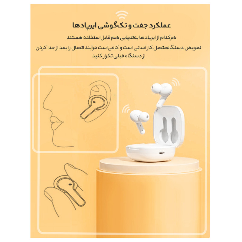 هندزفری بلوتوثی کیو سی وای از طراحی داخل گوش و جذابی بهره میبرد. درایور 7.2 میلیمتری دینامیک آن صدای شفاف و هیجانانگیزی را تولید و ماژول بلوتوث 5.1 اتصال سریع و پایداری را میسر میکند. میکروفونهای این هدفون به فناوری نویز کنسلینگ مجهز شدهاند و امکان مکالمهای شفاف و باکیفیت را برایتان فراهم میکنند. باتری هندزفری و کیس مجموعا 40 ساعت شارژدهی را به کاربر ارائه میدهند. هندزفری بیسیم QCY T13 از طراحی داخل گوش بهره میبرد و با دو رنگ سفید و مشکی به بازار عرضه شده است. شیائومی در طراحی این هندزفری اصول ارگونومی را رعایت کرده است و زاویهای که بین قسمت سری و پایه هندزفری وجود دارد باعث میشود تا به شکل بهتری درون گوش قرار بگیرد. بر روی قسمت پایه هندزفری دو پین طلایی رنگ وجود دارد که برای شارژ باتری مورد استفاده قرار میگیرد. علاوه بر این، برای طراحی کیس شارژ این هندزفری از کپسولهای فضایی الهام گرفته شده است و شاهد خطوط نرم و زبان طراحی مدرن و جذابی هستیم. کیو سی وای در هندزفری T13 از یک باتری با ظرفیت 380 میلیآمپر ساعت برای محفظه شارژ استفاده کرده است که میتواند تا 30 ساعت شارژدهی داشته باشد. همچنین ایرپادها در حالت های مختلف عملکردهای متفاوتی دارند، به طور مثال در حالت پخش صدا تا 8 ساعت و در حالت مکالمه تا 5 ساعت شارژدهی داشته باشد. علاوه بر این شما این امکان را خواهید داشت تنها با 5 دقیقه شارژ به مدت 60 دقیقه از این محصول استفاده کنید. این محصول به اکثر دستگاههای هوشمند از جمله موبایل، تبلت و لپتاپ بهراحتی متصل میشود. هندزفری بلوتوثی کیو سی وای T13 یک انتخاب اقتصادی و بسیار باکیفیت با امکانات رضایتبخش در ردهی قیمتی خود محسوب میشود که ارزش خرید بسیار بالایی خواهد داشت.
