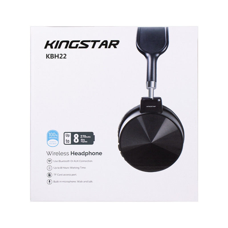 هدفون KBH22 با قابلیت استفاده هم با بلوتوث و هم با کابل AUX همراه با طراحی بسیار زیبا طرفداران زیادی را جذب خود کرده است.اگر بخواهیم از ویژگیهای ظاهری شروع کنیم ابتدا باید به این مورد اشاره کنیم در رنگهای مختلف عرضه شده است. همچنین دارای دو بلندگو با سایز 40 میلیمتر میباشد که موجب شده بعد از استفاده طولانی مدت گوشهایتان اذیت نشوند.از امکانات این محصول میتوان به پشتیبانی از درگاه microUSB برای شارژ شدن هدفون، پشتیبانی از کابل AUX برای اتصال باسیم به دستگاه پلیر، پشتیبانی از رادیو موج FM و بلوتوث ورژن 5.1 با برد عملیاتی 10 متر را نام برد. میتوانید این محصول را علاوه بر بلوتوث با کابل AUX نیز به پلیر خود متصل نمایید. بدون نویز و صداهای آزار دهنده به موسیقی دلخواهتان گوش فرا دهید و از قابلیتهای این محصول که در تصویر زیر قابل مشاهده است بهرهمند شوید.اما از مشخصههای بارز در طراحی این محصول قابلیت چرخش گوشیهای چرمی هدفون میباشد.این محصول زیبا و شیک شرکت کینگ استار با ظرفیت باتری داخلی لیتیوم قابل شارژ 270 میلیآمپر یک میکروفون داخلی با قابلیت مکالمه همانند هندزفری را نیز داراست. همچنین زمان پخش موسیقی این محصول با ولتاژ شارژ 5 ولت تا 8 ساعت با 50٪ حجم صدا است. هدبند این محصول نیز از جنس پلاستیک ABS میباشد. قابلیت افزایش یا کاهش ارتفاع در این قسمت آن را برای استفاده هر کاربری مناسب میکند. هدفون بلوتوثی کینگ استار مدل KBH22 فرکانس 20 هرتز تا 20 کیلوهرتز را پشتیبانی میکند.با توجه به این فرکانس پاسخگویی، میتوان تمام صداهای یک موسیقی را به طور کامل و به وضوح شنید و از آن لذت برد. امپدانس بلندگوهای آن نیز 32 اهم میباشد که از دیگر عوامل صدای با کیفیت این کالاست. از دیگر مشخصات فنی این هدفون خروجی مجاز 110 میلیوات و ولتاژ عملیاتی 3.3 و 4.2 ولت است. برای شارژ این محصول نیز حدود 2 الی 3 ساعت زمان لازم است.درنهایت آخرین نکتهای که در رابطه با هدفون KBH22 باقی میماند بحث محتویات درون پک محصول است که شامل یک عدد کابل شارژ micro-usb و یک عدد دفترچه راهنمای کاربر میباشد.