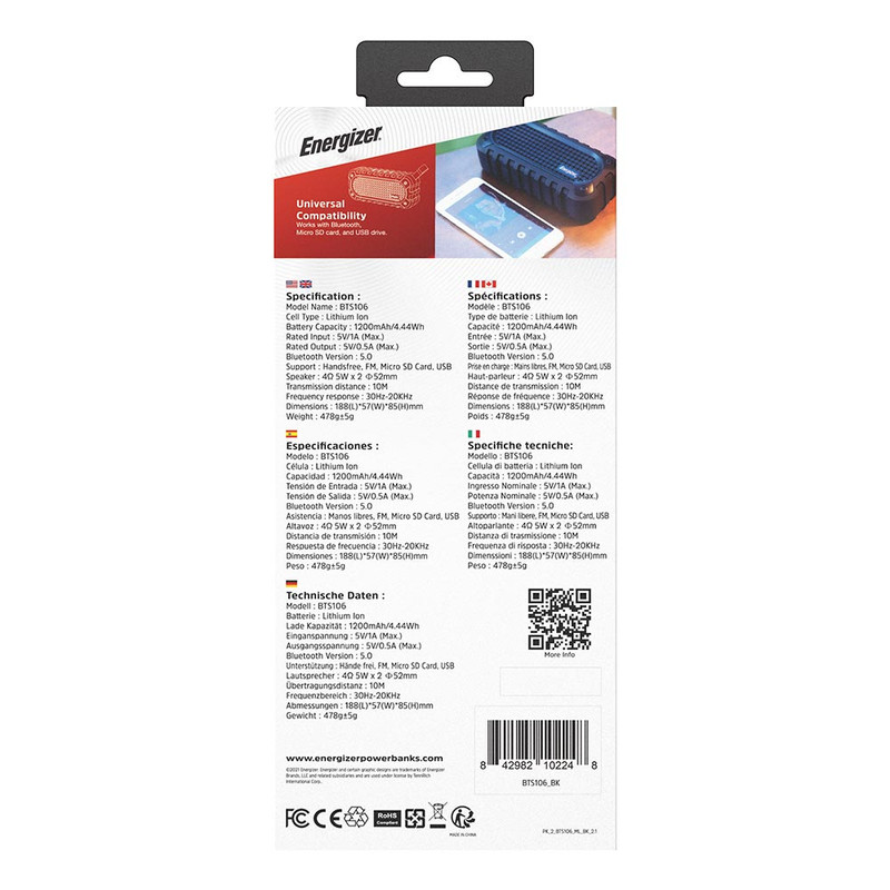 توان خروجی اسپیکر: 4Ω - 5 W - 2xΦ 52mm