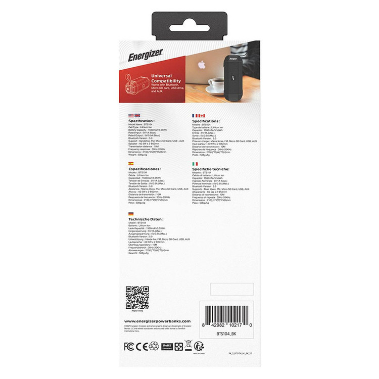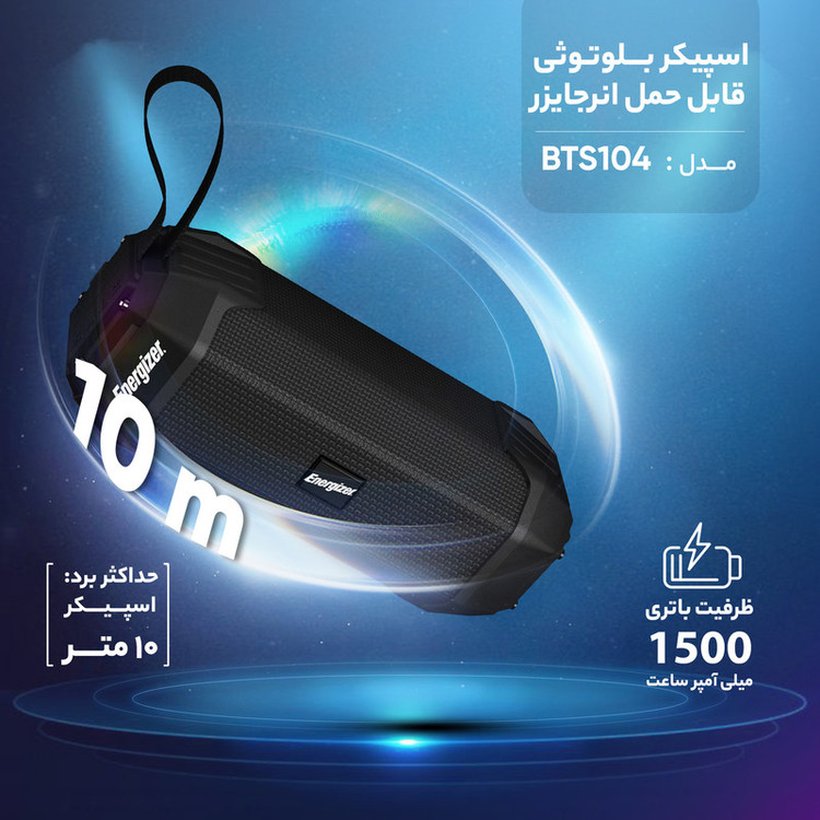 اسپیکر بلوتوثی قابل حمل انرجایزر مدل BTS104 (ضمانت اصالت + گارانتی معتبر اصلی)