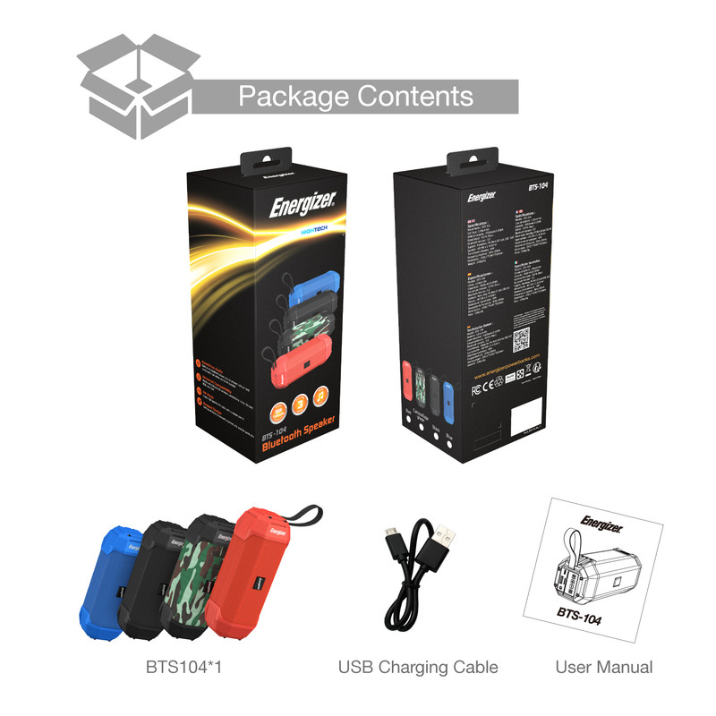 اسپیکر بلوتوثی قابل حمل انرجایزر مدل BTS104 (ضمانت اصالت + گارانتی معتبر اصلی)