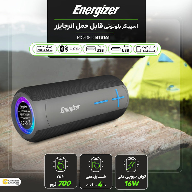 اسپیکر بلوتوثی قابل حمل انرجایزر مدل BTS161 (ضمانت اصالت + گارانتی معتبر اصلی)
