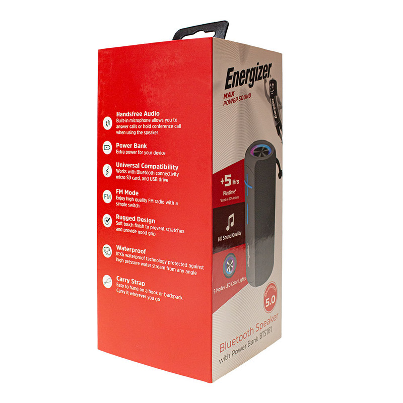 اسپیکر بلوتوثی انرجایزر مدل BTS161 یک محصول قابلحمل برای شما است. دارای درایور Premium با کیفیت hifi است که موجب پخش موسیقی با کیفیت بالا و صدای واضح و معتبر شده است. شامل پنج حالت مختلف نورپردازی از چراغهای LED قابل استفاده در مهمانی است که همانند ضربان میدرخشند و زمان آرامش بخشی را برای شما به ارمغان میآورند. خاصیت ضد آب IPX5 از اسپیکر در برابر جریان آب با فشار بالا از هر زاویهای محافظت میکند و آن را قابل استفاده در فضاهای داخلی و بیرونی ساخته است. میکروفون داخلی به شما این امکان میدهد تا در هنگام استفاده از بلندگو مستقیماً به تماسهایتان پاسخ دهید و تماس کنفرانسی برقرار کنید. بلوتوث نسخه 5.0 یک اتصال بیسیم پایدار و قوی را با فاصله انتقال 10 متر برای شما فراهم میآورد. همچنین با پورت AUX ،USB و کارت میکرو SD نیز کار میکند. طراحی بند سبک وزن آن، حمل اسپیکر بلوتوث انرجایزر مدل BTS161 را هنگام حرکت آسان کرده است. این اسپیکر از محصولات پرفروش کمپانی انرجایزر به شمار میرود و قطعا برای شما انتخابی ایدهآل خواهد بود.