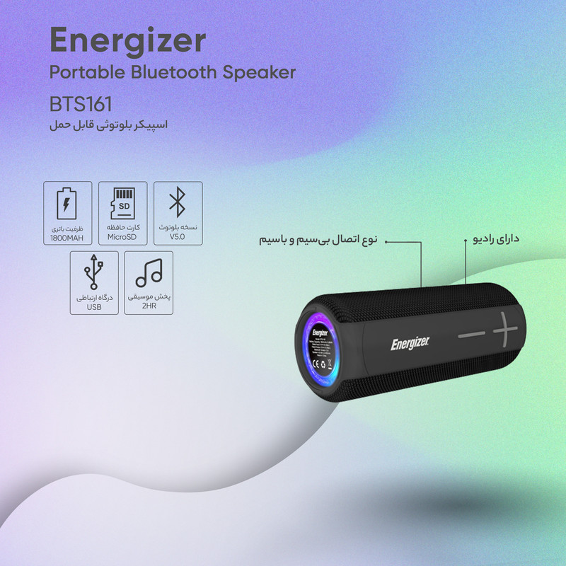 اسپیکر بلوتوثی قابل حمل انرجایزر مدل BTS161 (ضمانت اصالت + گارانتی معتبر اصلی)