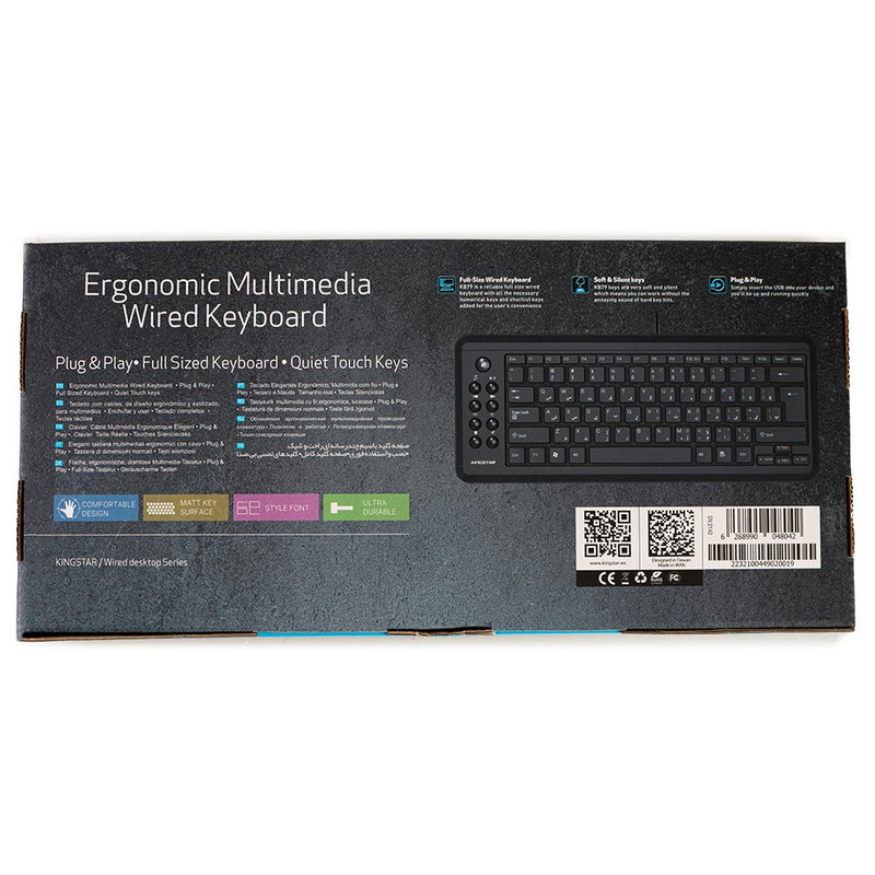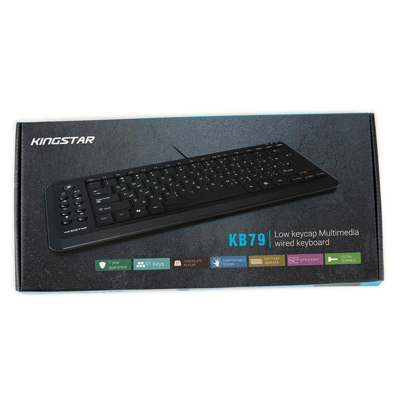 کیبورد «KB79» محصولی از شرکت «کینگستار » است که به صورت باسیم و از طریق درگاه USB به کامپیوتر متصل میشود. این کیبورد دارای 91 کلید برای انجام فعالیتهای کامپیوتری است؛ همچنین کیبورد KB79 دارای 9 کلید میانبر برای انجام سریعتر کارهاست که شامل Web Home - Music - Play/Pause - Pre Track - Next Track - Volume - Stop - Closure در قسمت کنار کیبورد قرار گرفتهاند. کیبورد کینگستار مدل KB79 برای استفادههای روزمره مناسب است طراحی کلید ها به نوعی است که امکان تایپ کردن در مدت زمانی طولانی را فراهم میکند - دسترسی راحت به تمامی کلید های کاربردی - طراحی نرم و سایلنت کلید ها - با دوام - کلید های مات