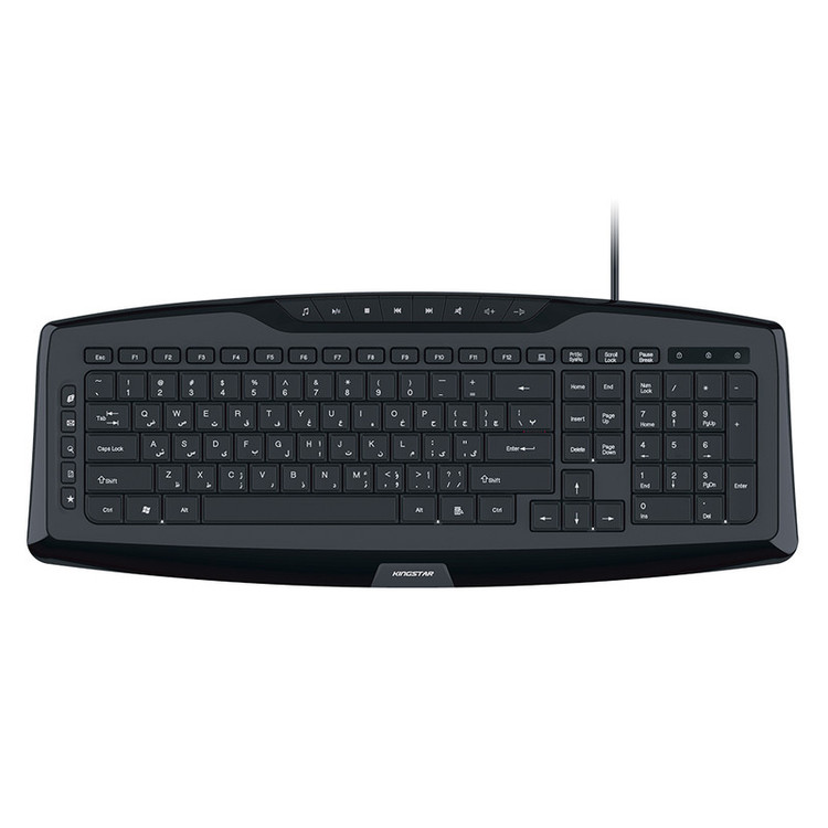 کیبورد کینگ استار مدل kb83 از نوع سیم دار میباشد و از طریق درگاه USB به کامپیوتر متصل میشود. این کیبورد دارای 117 کلید برای انجام فعالیتهای کامپیوتری است. همچنین کیبورد kb83 دارای 13 کلید میانبر به منظور انجام سریعتر کارهاست که عبارتند از Web Home, email, Search, Refresh, Favorite, Music, Play/Pause, Stop, Pre. Track, Next Track, Mute, Volume. کیبورد کینگ استار مدل kb83، برای استفادههای روزمره مناسب است. از دیگر ویژگیهای این کیبورد محصول کمپانی کینگ استار، طراحی کلیدها به گونهای که امکان تایپ کردن در مدت زمانی طولانی را فراهم می کند، دسترسی راحت به تمامی کلید های کاربردی، طراحی نرم و سایلنت کلید ها، با دوام و دارای کلید های مات میباشد.