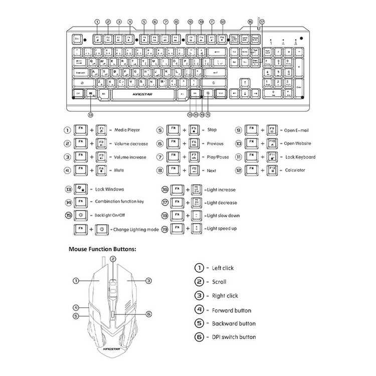 کیبورد کمبو کینگ استار مدل kbm285G دارای طراحی ارگونومیک و دکمه های حساس هنگام فعالیت میباشد. از مشخصههای این محصول کمپانی کینگ استار، عنوان کمبو میباشد. این نام به جهت وجود دو محصول ماوس و کیبورد در یک پک انتخاب شده است. کیبورد کمبو به گونهای طراحی شده است که زیر کلیدها نورپردازی زیبای RGB شکل گرفته است. روکش ژلاتینی بسیار با کیفیت بکار رفته زیر کلیدهای این کیبورد موجب شده تا طول عمر این محصول به 5میلیون بار کلیک افزایش پیدا کند که این میزان قابل توجهی برای کاربران محصولات گیمینگ میباشد. ازدیگر نکات قابل توجه در طراحی کلیدهای این کیبورد گیمینگ میتوان به مقاوم بودن آنها دربرابر پاشیده شدن آب روی آنها اشاره کرد که موجب رضایت بسیاری از کابران این محصول شده است. یک جک پایه هم در زیر کیبورد جهت قرارگیری راحتتر آن بر روی میز تعبیه شده است. این کیبورد همچنین دارای کابلی با ضخامت 3.2میلیمتر و طول 1.5متر میباشد که با پورت USB قابلیت اتصال به دستگاههای شامل این پورت را دارند. ولتاژ و جریان این محصول نیز به ترتیب 5ولت و 100میلیآمپر میباشد. کیبورد کمبو kbm285G با ابعاد 448x158x48 میلیمتر و وزن 670±10 گرم با سیستم عاملهای ویندوز 2000/XP/Vista/7/8/10/11 نیز سازگار میباشد.