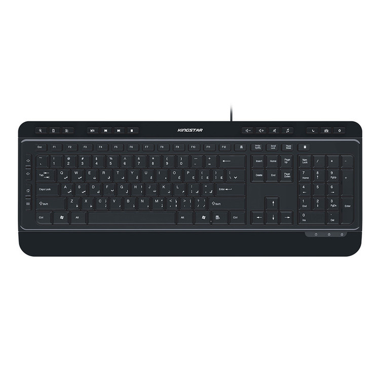 کیبورد کینگ استار مدل kb97 از نوع سیم دار میباشد و از طریق درگاه USB به کامپیوتر متصل میشود. این کیبورد دارای 124 کلید برای انجام فعالیتهای کامپیوتری است. همچنین کیبورد kb97 دارای 17 کلید میانبر به منظور انجام سریعتر کارهاست که عبارتند از Prev. Page, Next Page, Web Home, email, Search, Refresh, Setting, Play/Pause, Prev. Track, Next Track, Stop, Volume, Mute, Music, Sleep, Awake, Power. کیبورد کینگ استار مدل kb97 برای استفادههای روزمره مناسب میباشد. از دیگر ویژگیهای این کیبورد محصول کمپانی کینگ استار، طراحی کلیدها به گونهای که امکان تایپ کردن در مدت زمانی طولانی را فراهم می کند، دسترسی راحت به تمامی کلید های کاربردی، طراحی نرم و سایلنت کلید ها، با دوام و دارای کلید های مات میباشد.