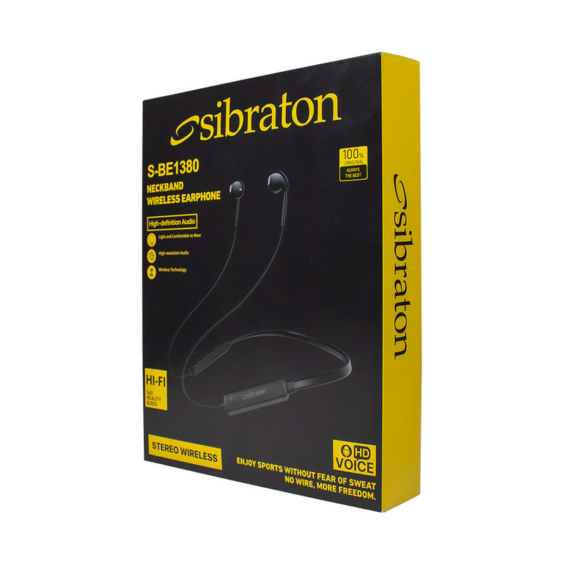 یکی از کالاهای پراستفادهی کاربران که موجب شده تا جای هندزفریهای قدیمی را بگیرد، ایرفونها هستند. کمپانی سیبراتون در راستای تولیدات با کیفیت و پرفروش خود در زمینهی هدفون و هندزفری، اقدام به تولید و عرضهی محصولی مطابق با استانداردهای جهانی و پرکاربرد کرده است. ایرفون بلوتوثی سیبراتون مدل S-BE1380 در دسته ایرفونهای دورگردنی که عموماً با نام نکبند میشناسند، قرار میگیرد.یکی از ویژگیهای کاربردی ایرفون (نکبند) بلوتوثی سیبراتون مدل S-BE1380 میتوان به نگهدارنده گردنی انعطاف پذیر آن اشاره کرد که میتواند تاثیر بسزایی در نگهداری و افزایش طول عمر محصول داشته باشد. علاوه بر آن، این محصول مجهز به پنل مدیریت صدا و پاسخگویی به تماس است و کیفیت و حجم صدای خروجی قابل قبولی دارد. انرژی مورد نیاز آن نیز از طریق باتری داخلی تامین میشود. همچنین این ایرفون مشکی رنگ با طراحي بسيار زيبا با جنس بدنهی پلاستیک نرم و قطر درایور 10 میلیمتر از وزن نسبتا کمي با مقدار 22 گرم برخوردار است. اين امر باعث ميشود، کاربر با استفادهي طولاني مدت خسته نشود. جنس قسمت دورگردني اين ایرفون، انعطاف پذير است و از شکسته شدن در طول فعاليتهاي روزانه جلوگيري ميکند.پاسخ به تماسهای تلفنی و پخش آهنگ فقط با فشردن یک دکمه برای شما امکان پذیر است. شما میتوانید برای استفاده از ایرفون وایرلس S-BE1380 توسط بلوتوث نسخه 5.0 با محدوده عملکرد 10 متر به آن متصل شوید. امپدانس و فرکانس این ایرفون به ترتیب 32اهم و 20هرتز الی 20کیلوهرتز میباشد. از دیگر ویژگیهای این ایرفون میتوان بیان کرد که از طریق بلوتوث به گوشی همراه شما متصل میشود بنابراین شما را از قید و بند کابلهای صوتی رها میسازد. دارای یک پورت تایپ سی جهت اتصال کابل شارژر نیز میباشد.