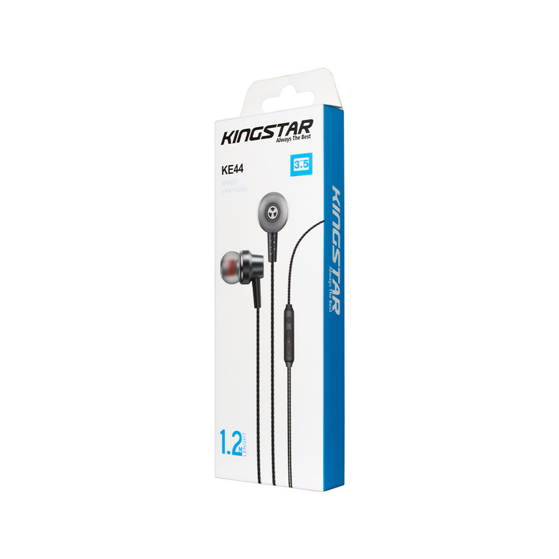 هندزفری مدل KE44 محصولی از کمپانی کینگ استار است که میتواند هر کاربر خوشسلیقهای را به خود جذب نماید. برای این مدل، یک میکروفون در نظر گرفته شده است تا کاربران قادر به مکالمه با موبایل خود باشند. همچنین یک عدد دکمه برای قطع و وصل کردن صدا در آن تعبیه شده است. با این دکمهها میتوانید به تماسهایتان پاسخ دهید یا مکالمه را قطع کنید.طول کابل هندزفری KE44 به اندازهی 120 سانتیمتر میباشد. اتصال آن، با یک جک 3.5 میلیمتری انجام میگیرد که باعث میشود با تمام موبایلها و پخشکنندهها سازگار باشد. صدایی که از این محصول با حساسیت 96db±5db به گوش شما میرسد، بسیار پرقدرت و واضح است. همچنین فرکانس و امپدانس این کالا به ترتیب 20هرتز الی 20کیلوهرتز و 16 اهم میباشد. قطر 10 میلیمتری درایور این هندزفری موجب شده تا به راحتی از گوشتان جدا نشود. جنس این محصول نیز از پلاستیک ABS و PVC میباشد که از نکات برجسته آن میتوان به ضد اشتعال بودن کالا اشاره کرد. حفرههایی از جنس آلومینیوم به همراه انحراف صدای کم و نفوذ صدای بالا موجب شده تا این محصول مورد استقبال گستردهای از کاربران قرار بگیرد.