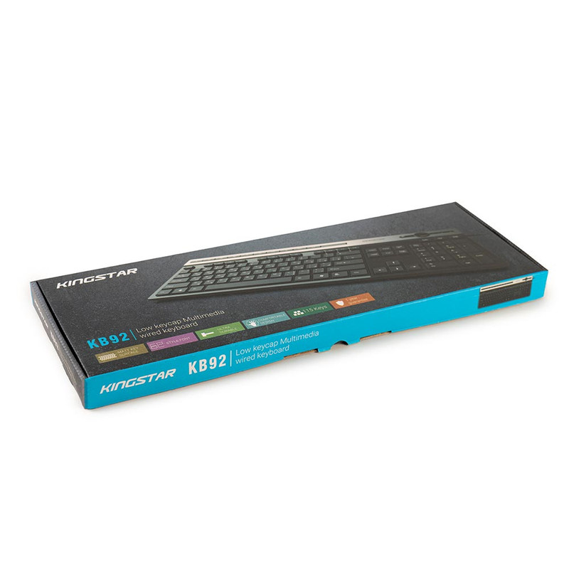 کیبورد «KB92» محصولی از شرکت «کینگستار » است که به صورت باسیم و از طریق درگاه USB به کامپیوتر متصل میشود. این کیبورد دارای 115 کلید، برای انجام فعالیتهای کامپیوتری است؛ همچنین کیبورد KB92 دارای 10 کلید میانبر برای انجام سریعتر کارهاست که شامل Web Home - Music - Play/Pause - Pre Track - Next Trac- Volume - Stop - Closure - Power - Dormant - My Computer - E-Mail -Refresh -Favorites - - Calculator - در قسمت بالای کیبورد قرار گرفتهاند. کیبورد کینگستار مدل KB92، برای استفادههای روزمره مناسب است.