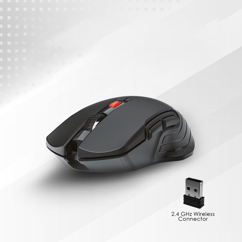 دارای نورپرداز RGB، دارای 6 کلید بر روی ماوس، طول عمر 3 میلیون بار کلیک، تا 2000 DPI دقت قابل تنظیم، اتصال از طریق دانگل 2.4 گیگاهرتز