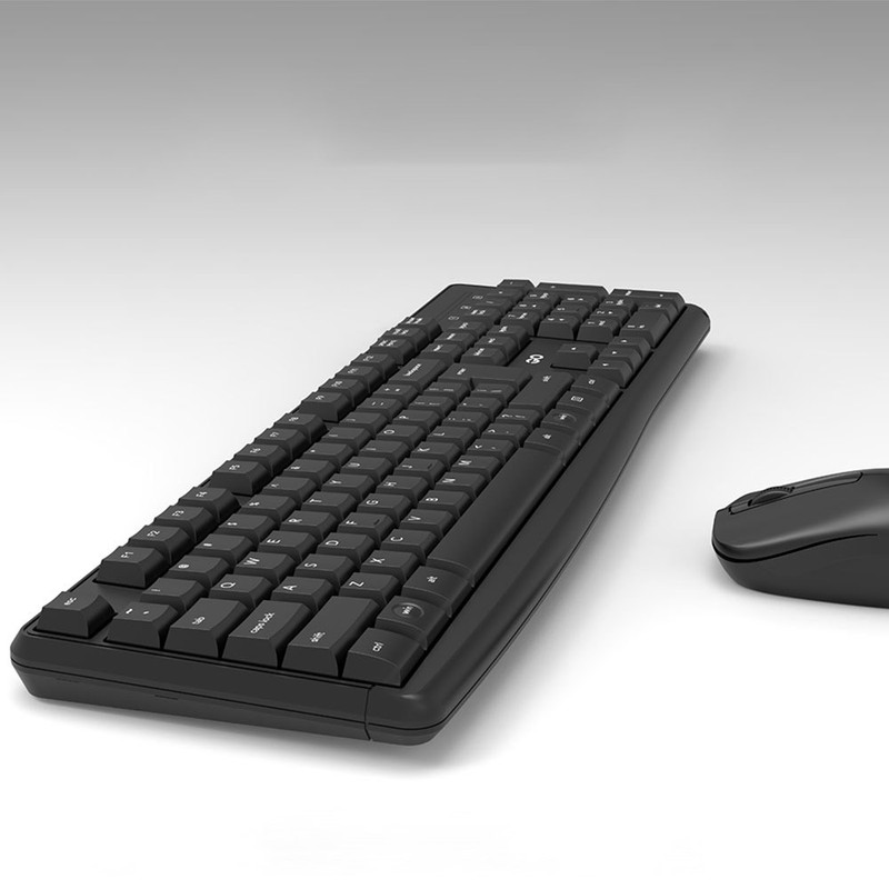 کیبورد و ماوس بیسیم، نوع سوئیچ کیبورد ممبران، دارای 104 کلید بر روی کیبورد، الفبای فارسی حک شده روی کیبورد، طول عمر ماوس 3 میلیون بار کلیک، طراحی ارگونومیک با حساسیت بالا