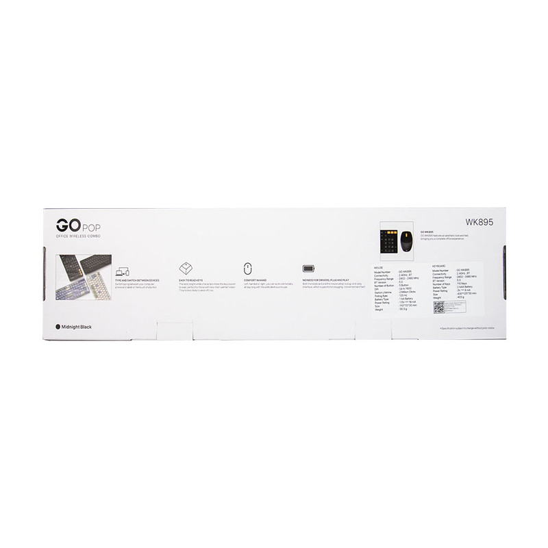 نکات فنی کیبورد کمبو مدل WK895 این کیبورد بیسیم از طراحی ارگونومیک و دکمههای حساس هنگام فعالیت بهره میبرد که ویژگیهای آن در ادامه اشاره شده است: قابلیت اتصال از طریق دانگل 2.4 گیگاهرتز و بلوتوث نسخه 5.0 قابل استفاده با باتری قلمی دارای 110 کلید بیصدا دارای سوئیچ بکار گرفته شده ممبران ابعاد 430*125*30 میلی متر و وزن 403 گرم نرخ ولتاژ و جریان به ترتیب 3 ولت 6 میلی آمپر فرکانس پاسخگویی 2402 – 2480 MHz نکات فنی ماوس کمبو مدل WK895 این ماوس نیز از طراحی ارگونومیک و وزن بسیار سبک 55.5 گرمی بهره میبرد که ویژگیهای آن در ادامه اشاره شده است: قابلیت اتصال از طریق دانگل 2.4 گیگاهرتز و بلوتوث نسخه 5.0 دارای 5 کلید بیصدا با طول عمر 2 میلیون بار کلیک قابل استفاده با باتری قلمی میزان دقت ماوس تا 1600 DPI ابعاد 110*70*30 میلی متر نرخ ولتاژ و جریان به ترتیب 1.5 ولت 18 میلی آمپر فرکانس پاسخگویی 2402 – 2480 MHz