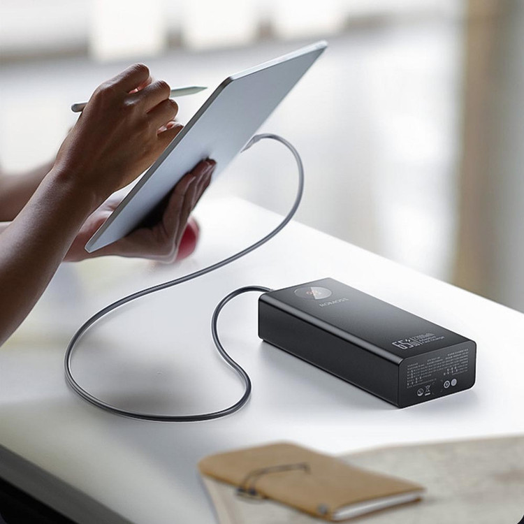 ورودی:Type-C1,C2: 5V/3A – 9V/3A – 12V/3A – 15V/3A – 20V/3.25A (65W) خروجی:Type-C1,C2: 5V/3A – 9V/3A – 12V/3A – 15V/3A – 20V/3.25A (65W), USB-A1,A2: 5V/3A – 9V/2A – 10V/2.25A – 12V/1.5A