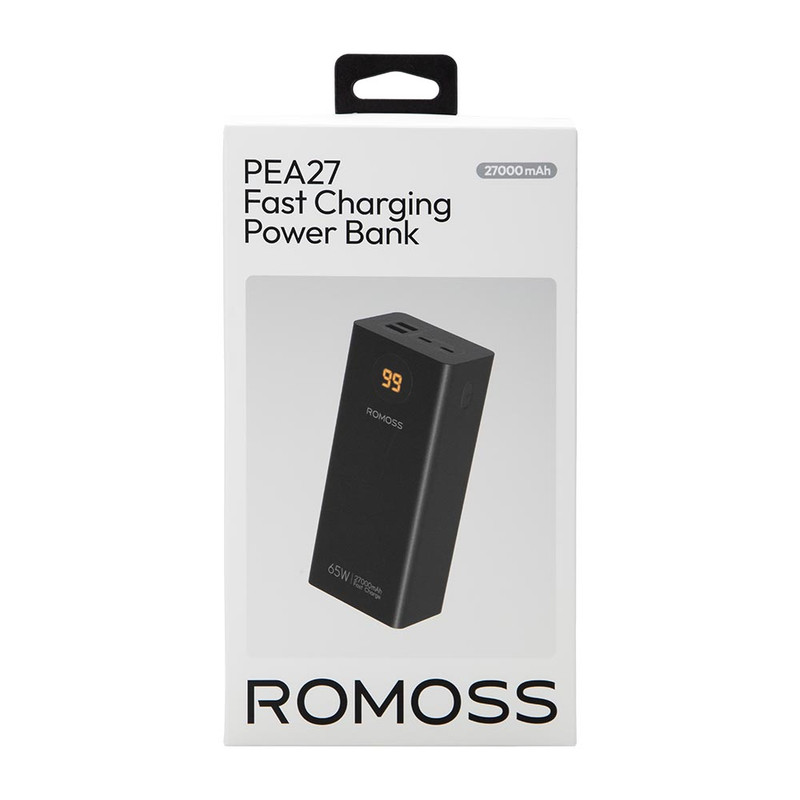 پاوربانک PEA27-282 دارای 4 پورت میباشد که شامل 2 پورت مشترک ورودی/خروجی تایپ سی و 2 پورت خروجی USB-A است. پورتهای ورودی به همراه نرخ ولتاژ و جریان آن عبارتند از: پورت Type-C1,C2 ورودی: 5V/3A – 9V/3A – 12V/3A – 15V/3A – 20V/3.25A نرخ ولتاژ و جریان پورتهای خروجی این کالا نیز عبارتند از: پورت USB-A1/A2 خروجی: 5V/3A – 9V/2A – 10V/2.25A – 12V/1.5A پورت Type-C1,C2 خروجی: 5V/3A – 9V/3A – 12V/3A – 15V/3A – 20V/3.25A این پاوربانک با حداکثر توان خروجی 65 وات دارای نمایشگر دیجیتال جهت نمایش میزان شارژ است. همچنین این محصول دارای وزن 655 گرم است که در کلاس وزنی پاوربانکهای نیمه سنگین قرار دارد. ابعاد این شارژر همراه نیز 160.6 × 69.8 × 43.2 میلیمتر است.این پاوربانک در رنگ مشکی با ظرفیت 27000 میلی آمپر دارای باتری لیتیوم پلیمری است که قابلیت شارژ لپ تاپ را نیز دارد. همچنین این کالا از رویه ضد خش و جنس بدنه آن نیز پلاستیک ABS است که مهمترین خاصیت آن ضد اشتعال بودن کالاست. از اقلام همراه این پاوربانک فست شارژ نیز میتوان به دفترچه راهنما و کابل شارژر دوسر تایپ سی اشاره کرد.