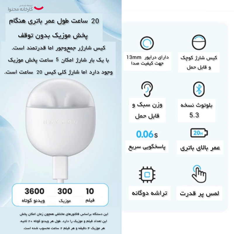 5 ساعت با کیس شارژ 20 ساعت