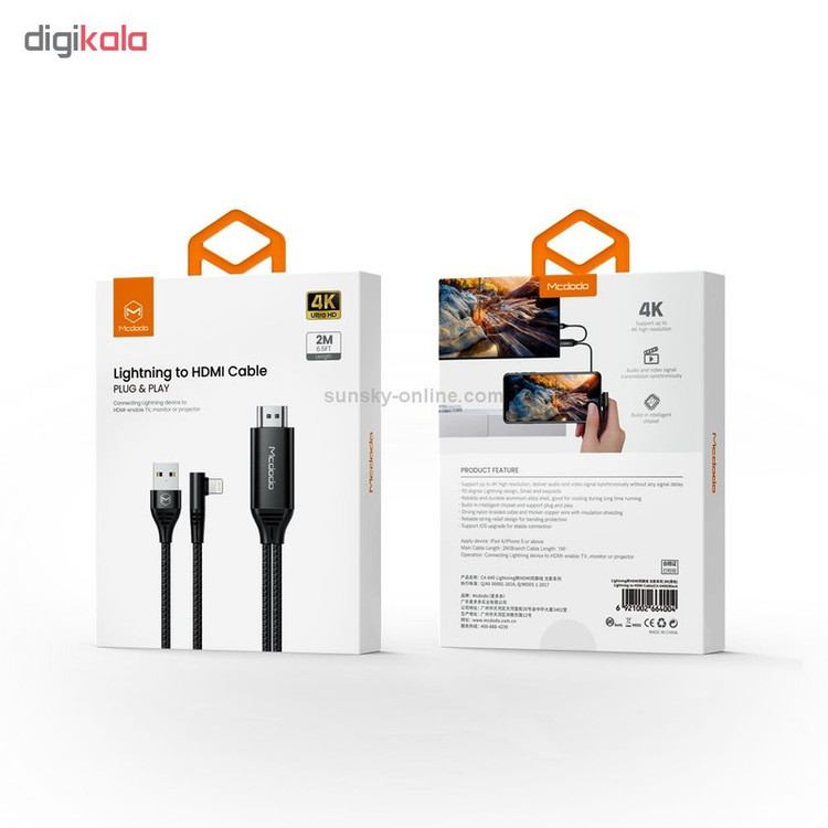 کابل تبدیل لایتنینگ به HDMI مک دودو مدل CA-6400 طول 2 متر (ضمانت اصالت + گارانتی معتبر اصلی)