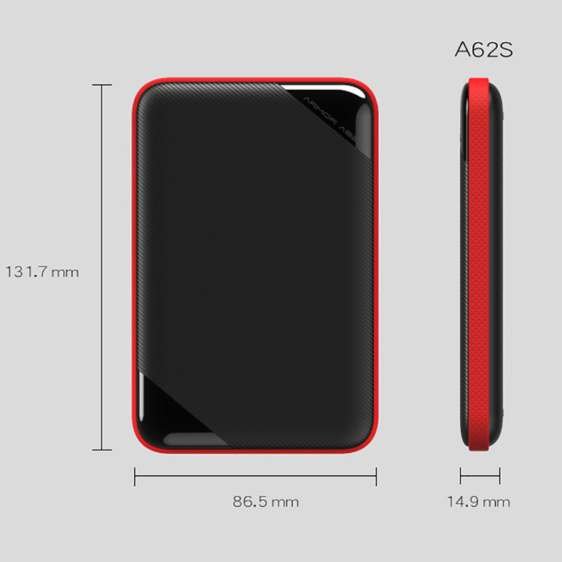 هارد اکسترنال «Armor A62» محصولی از شرکت «سیلیکون پاور» است که از ظرفیت یک ترابایت برای ذخیرهسازی اطلاعات بهره میبرد. شرکت سیلیکون پاور هارد اکسترنال A62 را در دو مدل Armor A62S و Armor A62L روانه بازار کرده است. هارد اکسترنال حاضر مدل Armor A62S بوده که ابعاد بسیار باریکتری دارد. این محصول شرکت سیلیکون پاور از بدنهای پلاستیکی و مقاوم در برابر انواع صدمات بهره میبرد. این بدنه که بهصورت هاشورزده طراحی شده میتواند در برابر خط و خش مقاوم باشد. شرکت سیلیکون پاور در اطراف هارد یک نوار قرمز در نظر گرفته که میتواند تا حد زیاد روی زیبایی هارد تاثیر مثبت داشته باشد. هارد اکسترنال Armor A62 از طریق رابط USB3.1 به کامپیوتر متصل میشود و میتواند اطلاعات را با سرعت زیاد انتقال دهد. این هارد در برابر پاشش آب، خط و خش و شوک مقاوم است. مقاومت هارد در برابر این صدمات باعث شده که خیال کاربر از به وجود آمدن مشکلات شایع در هاردهای اکسترنال آسوده باشد. کابل این محصول به بدنهی آن متصل نیست و میتوان آن را جدا کرد تا در زمان حمل فضای زیادی را اشغال نکند.