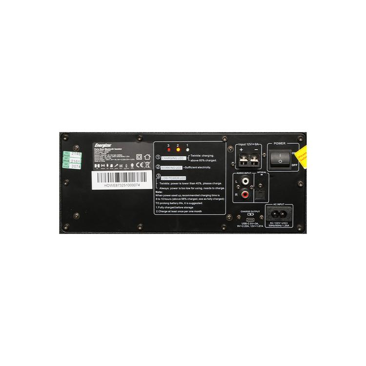 اسپیکر بلوتوثی انرجایزر مدل BTS845 دارای یک ساب ووفر 12 اینچی و دو توییتر 3 اینچی شامل میکروفون بیسیم و کنترل از راه دور (ضمانت اصالت + گارانتی معتبر اصلی)