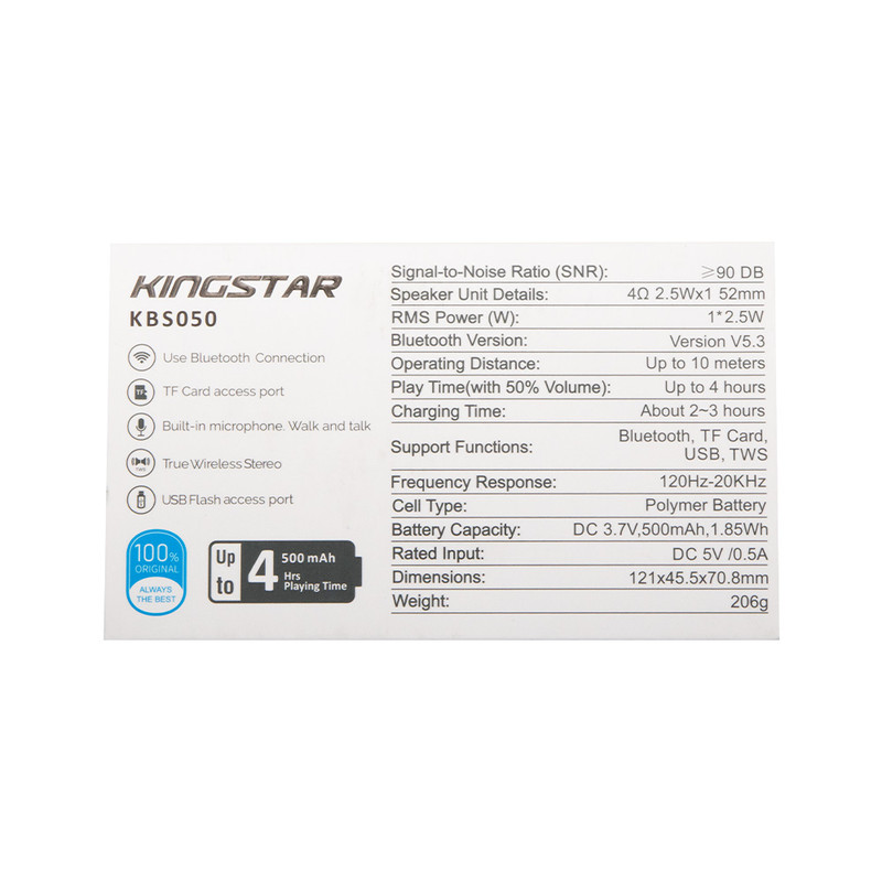 اسپیکر قابل حمل کینگ استار مدل KBS050 (ضمانت اصالت + گارانتی معتبر اصلی)