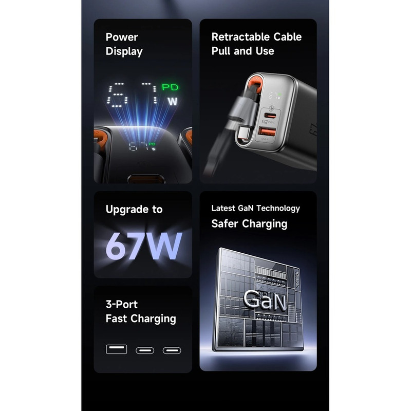 Mcdodo CH-4100 67W Adapter with Built-in USB-C Cable