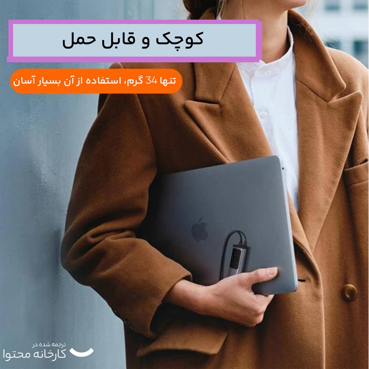 دارای پورت تایپ سی PD 100W | سازگار با سیستم عاملهای اندورید، مک و ویندوز | کانکتور Type C | حداکثر سرعت انتقال داده 1000Mbps | اتصال بدون نیاز به درایور