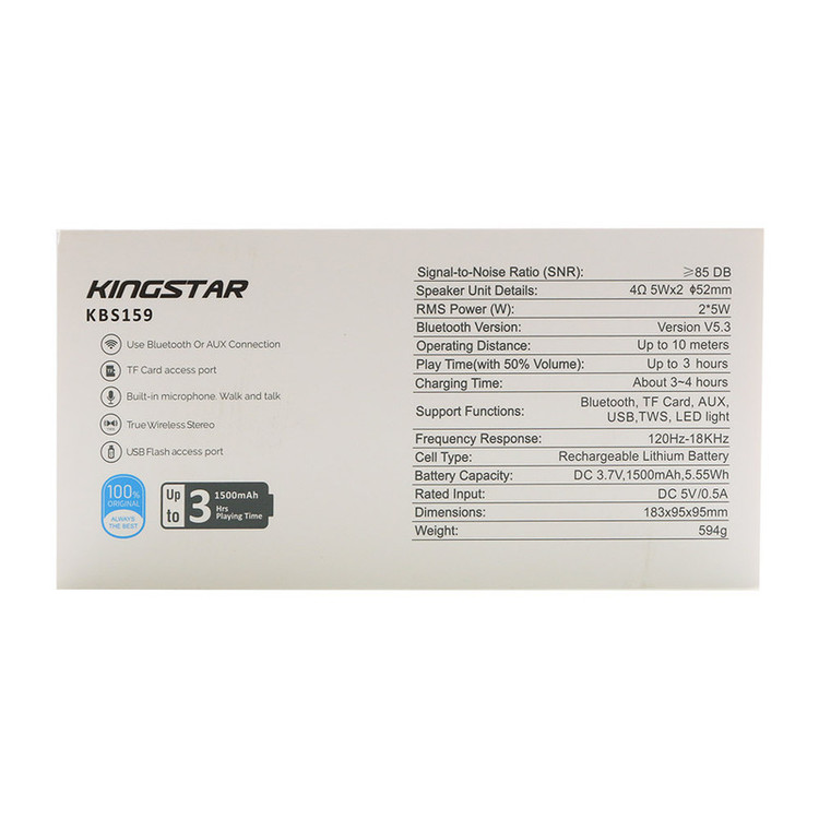 اسپیکر قابل حمل کینگ استار مدل KBS159 (ضمانت اصالت + گارانتی معتبر اصلی)